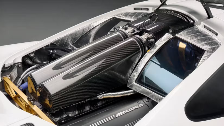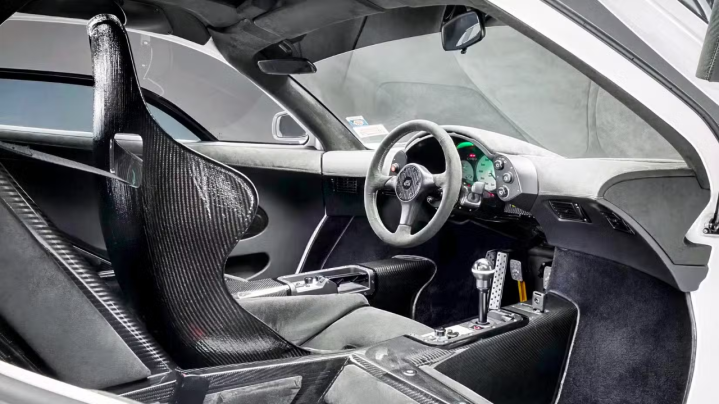 作为超跑史上的技术标杆,迈凯伦F1的原厂配置本就足够惊艳。它搭载由宝马赛车运动部门定制的6.1升V12自然吸气发动机,搭配独特的中央驾驶座三座布局,发动机舱甚至用真金箔隔热,这些设计在当时堪称颠覆性。